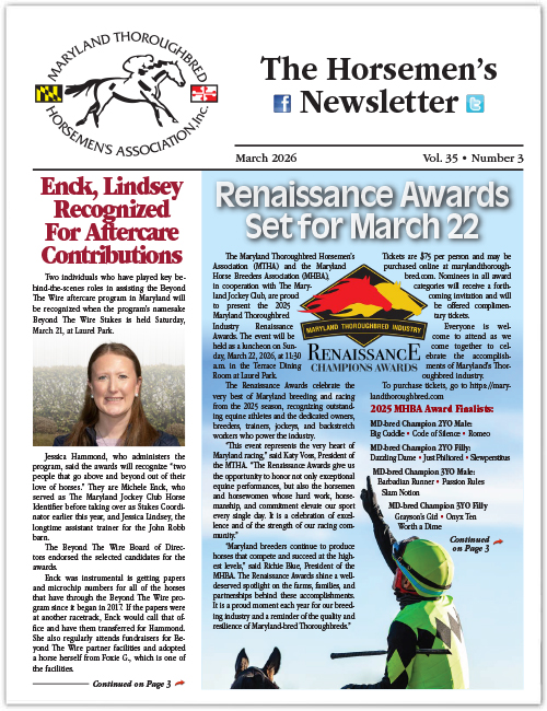 The Maryland Thoroughbred Horsemen's Association is the officially authorized organization that represents, assists and promotes the interests of Maryland's Thoroughbred owners and trainers.